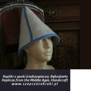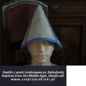 80.00 €Reconstruction of a cap, 14th century. Flemish Region, Belgium. Fresco from the Leugemeete church in Ghent depicting a municipal militia. A cap made of natural wool by hand felting.