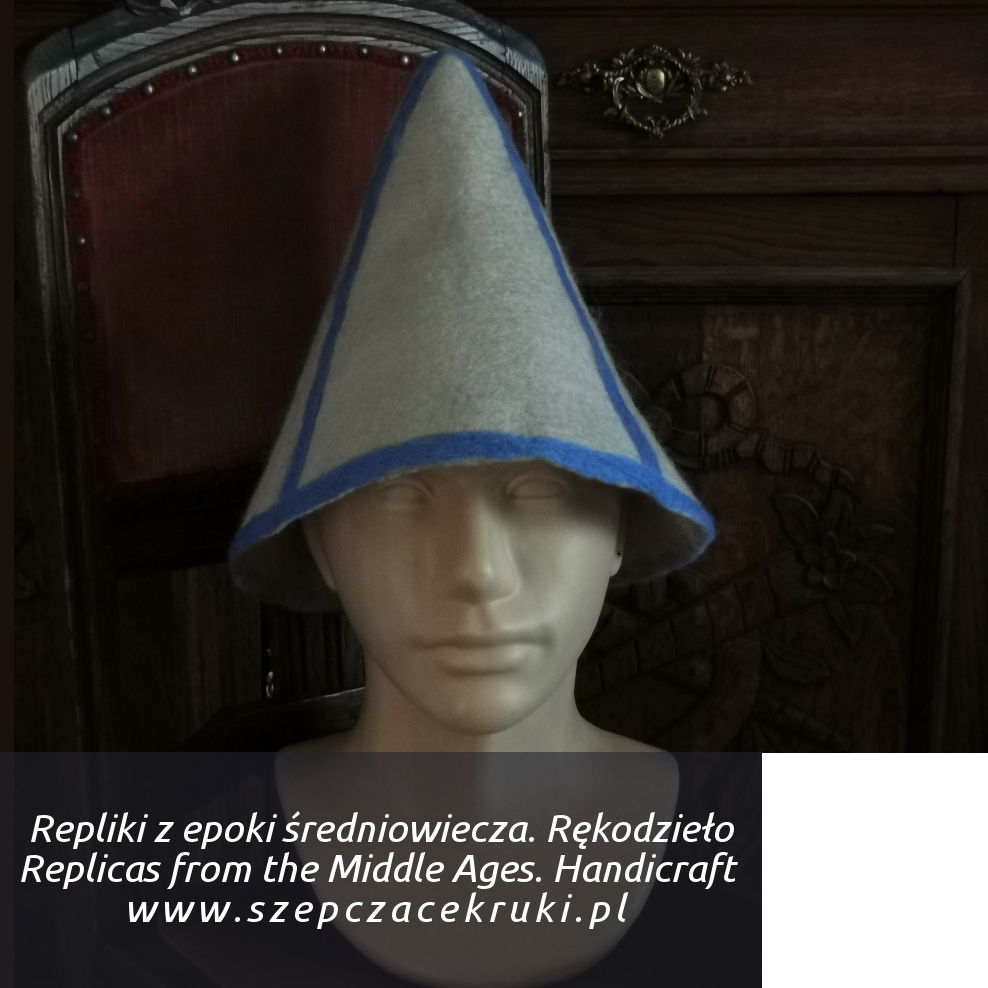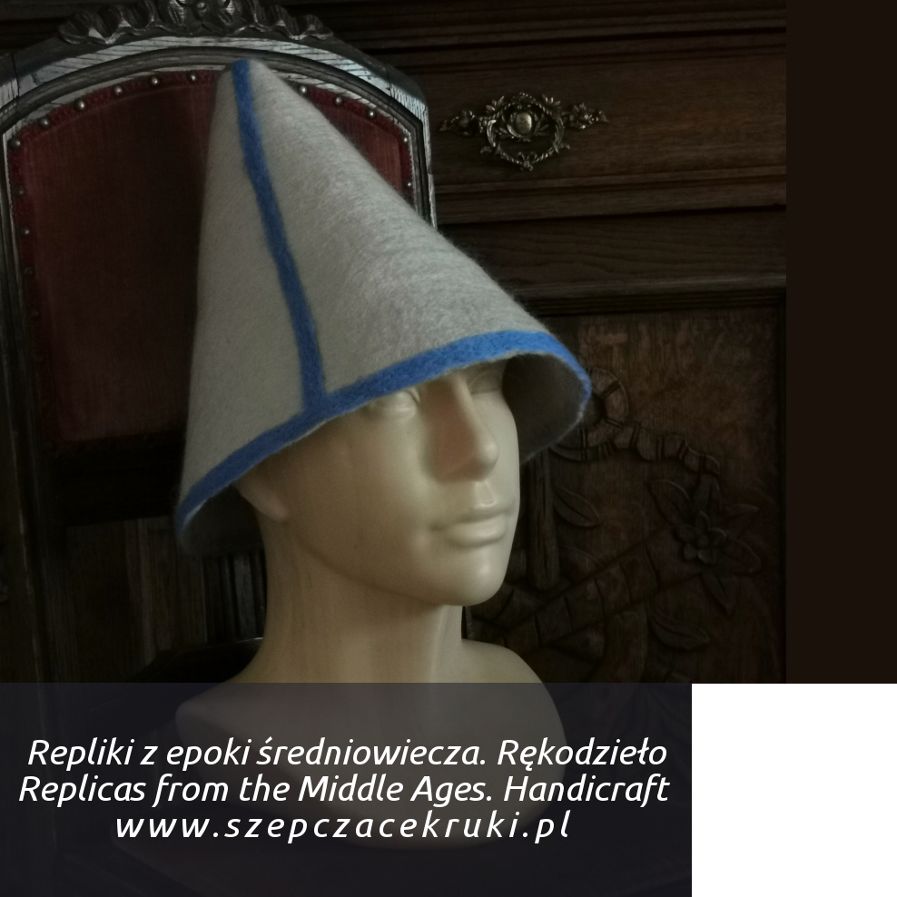 Reconstruction of a cap, 14th century. Flemish Region, Belgium. Fresco from the Leugemeete church in Ghent depicting a municipal militia. A cap made of natural wool by hand felting.